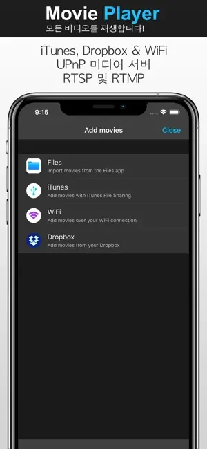 Movie Player를 사용하면 좋아하는 영화를 iPhone, iPad, iPod Touch에서 볼 수 있습니다.