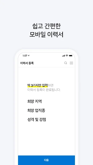 - 3분이면 완성되는 간편한 모바일 이력서를 등록해 보세요.
