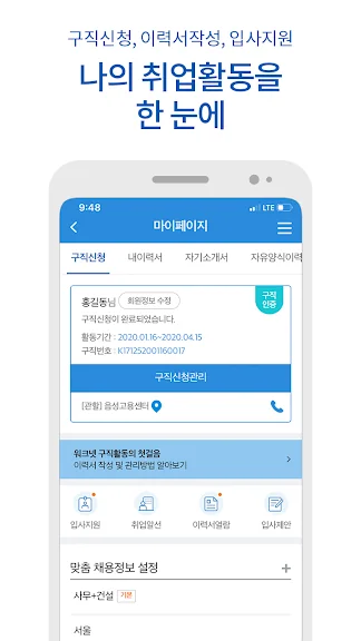 - 등록한 이력서로 일자리에 입사지원하면 끝!