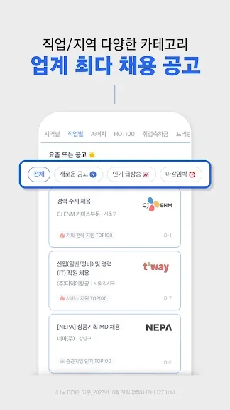 2) 잡코리아 - 대한민국 1위 커리어 플랫폼 어플 스크린샷