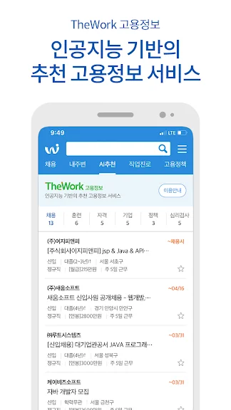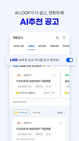 - AI 추천일자리 정보를 앱 푸시로 매일 받아보세요.