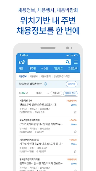 - 스마트폰 GPS를 활용한 내 주변 일자리 정보, 채용행사, 채용박람회 정보
