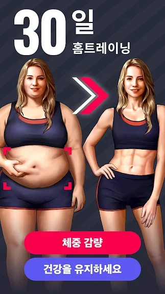 아래는 여성용 체중 감량 앱 - 홈 트레이닝 어플에 대한 스크린샷 정보입니다.