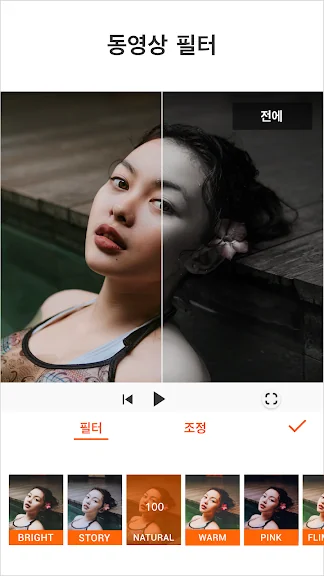+ 다양한 필터와 보정으로 세련된 영상의 느낌을 연출해보세요. 밝기, 콘트라스트, 채도, 색조, 그림자 등 디테일한 보정을 지원합니다.