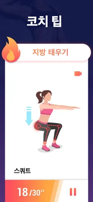 기구가 필요 없이 모든 운동은 집이나 원하는 모든 곳에서 언제든지 할 수 있습니다. 그래프로 체중 감소 진행 및 태운 칼로리를 추적할 수 있습니다. 30일 플랜을 따라 하루에 5-10분만 투자해 살을 빼고 건강해지세요!