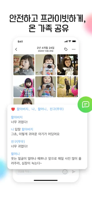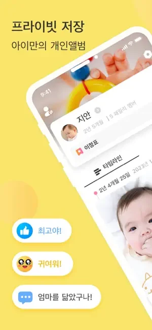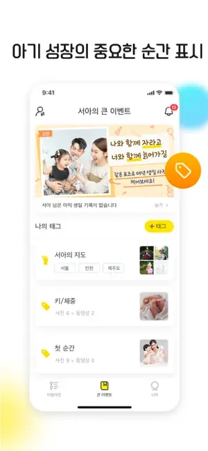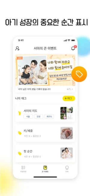 가족들과 아이의 소중한 순간을 공유하고 기록하세요. 성장한 아이에게 특별한 유산이 될거에요.