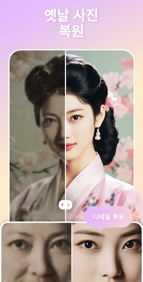 이 멋진 사진 향상 앱을 사용하면 손쉽게 원하는 사진을 복원하고, 흐릿한 부분을 제거하고, 향상시켜서 오래된 가족 사진에 다시 활력을 불어넣고, 예전의 추억을 함께 회상할 수 있습니다.🥰