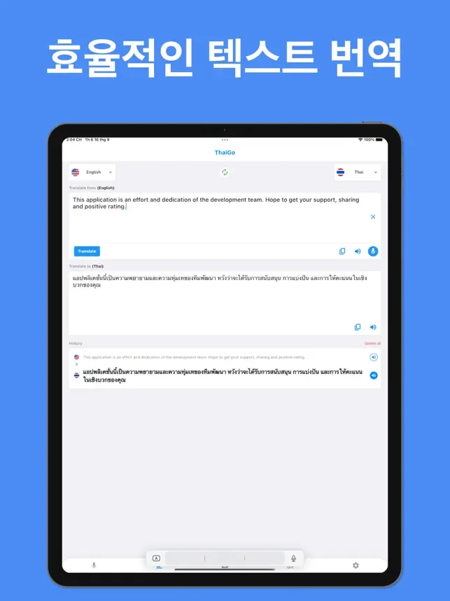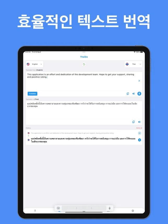 태국어로 된 음성, 텍스트, 사진을 45개 언어로 또는 그 반대로 정확하고 매우 편리하게 번역하세요.