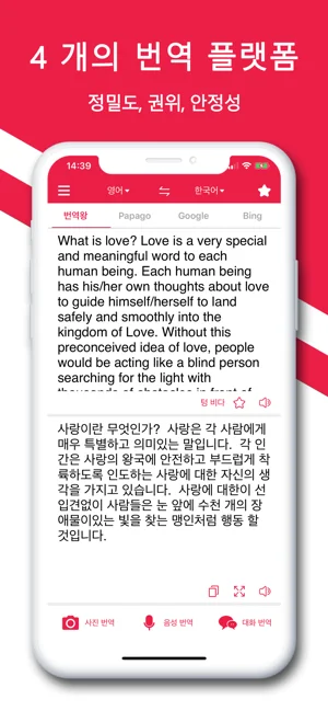 이 앱은 전 세계 모든 사람들이 사용하며 모든 언어를 번역합니다.