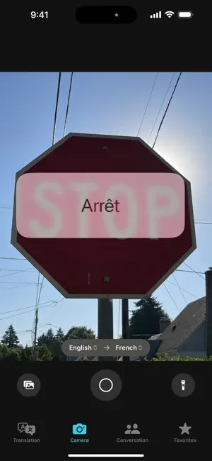 • 번역 카메라 - 카메라 보기를 사용하여 사용자 주변의 텍스트를 번역합니다. 실시간으로 텍스트를 번역하거나, 보기를 일시 정지하고 확대하여 자세히 보거나, 사진 보관함에서 사진에 있는 텍스트를 번역할 수 있습니다.