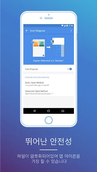 또한 앱 아이콘을 변경하여 앱 자체를 위장 할 수 있습니다. 중요한 사진과 동영상을 HideF에 넣어서 당신을 제외한 누구도 그 존재를 모르게하세요.