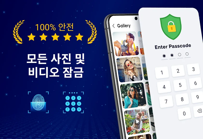 • 잠금 뒤에 숨겨진 모든 것 - 모든 사진들은 PIN, 패턴 또는 지문을 통해 보호됩니다.