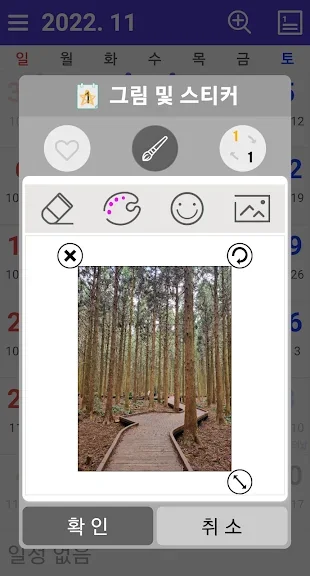 - 날짜에서 롱클릭 => 날짜 위에 O, X, ♡, ☆, 이모티콘, 손글씨 표시