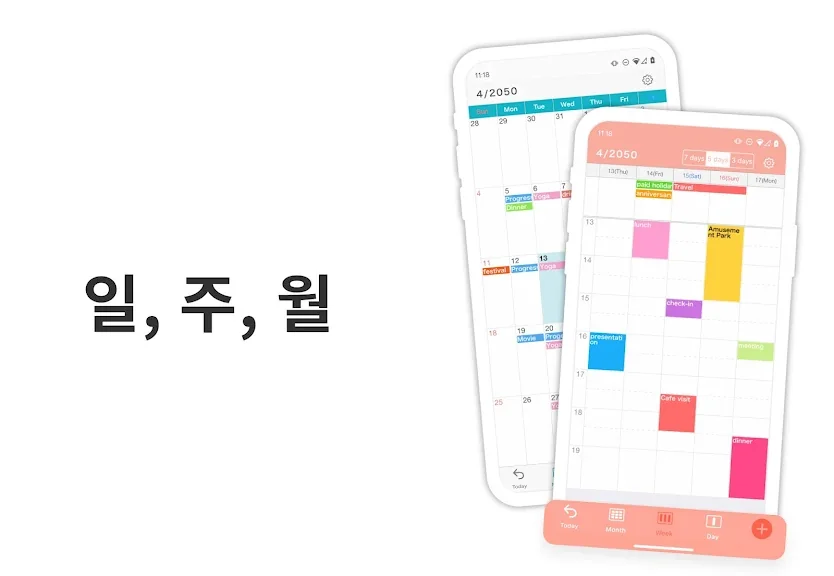 또한, 주 캘린더는 달력 위젯을 사용하여 7일, 5일, 3일 표시로 바꿀 수 있어 자신에게 딱 맞는 표시 방법을 찾을 수 있습니다.