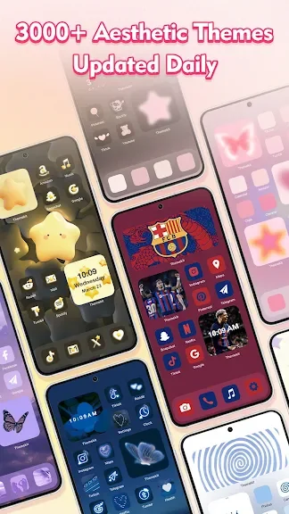 광범위한 테마 컬렉션: 다양한 취향과 선호도에 맞는 1000개 이상의 다재다능하고 아름답게 디자인된 테마 중에서 선택하세요. 미니멀리즘, 생동감, 어둡거나 자연에서 영감을 받은 테마를 선호하든 테마: 위젯 및 아이콘 체인저에는 모든 사람을 위한 무언가가 있습니다.