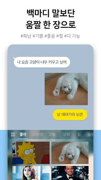 고양이 움짤을 보내고 싶다? 고양이 라고 검색, 선택, 보내기, 끝!