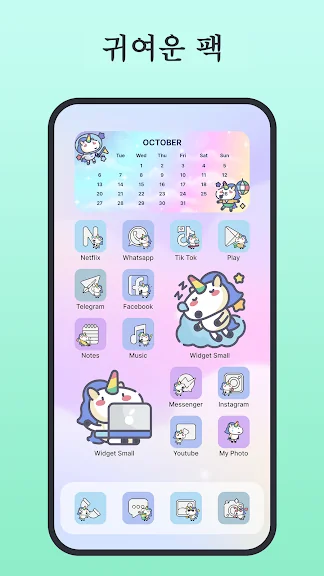 정교한 아이콘 팩: 다양한 아이콘 팩으로 앱 아이콘을 사용자 지정하세요. 각 팩은 선택한 테마와 완벽하게 조화를 이루고 홈 화면에 일관된 모습을 제공하도록 세심하게 디자인되었습니다.