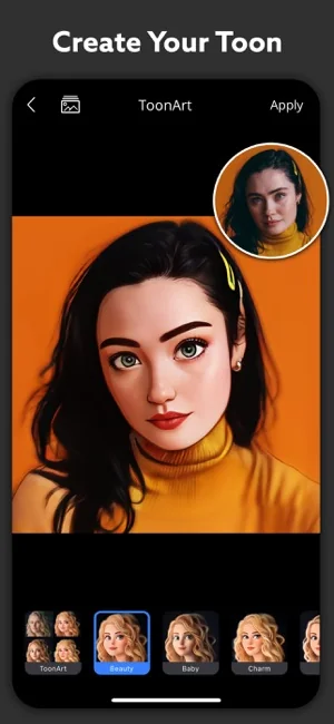 ToonArt의 세계에 오신 것을 환영합니다! 자신을 툰으로 만들고 아바타를 만들 수 있는 강력한 만화 사진 편집기 앱입니다. AI 기술로 구동되는 이 사진 편집기는 좋아하는 애니메이션, 캐리커처 또는 픽사에서 영감을 받은 만화를 단 몇 초 만에 만듭니다. 카메라 필터를 사용하여 사진을 편집하고 좋아하는 3D 만화가 되십시오.