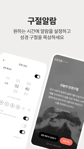 - QT 시간과 성경 구절을 알려주는 알람 기능 제공
