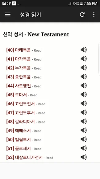 성경듣기 어플에 대한 스크린샷 정보가 필요하시다면 아래 이미지를 참고하시기 바랍니다.