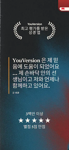 성경은 가볍고 오프라인 앱으로 매일 영적 여정을 떠날 수 있습니다. 성경 구절을 빠르게 찾아보고, 하이라이트, 책갈피 및 노트를 만들 수 있습니다. 오디오 성경 기능을 즐기고, 친구들과 함께 발견한 것을 공유하세요. 함께 하나님의 말씀을 경험하세요.