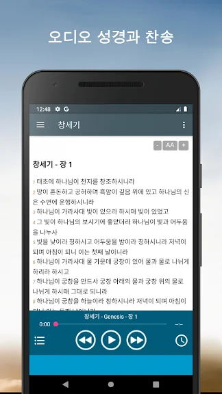 텍스트로 성경구절을 오프라인으로 읽고 저장하거나 인터넷에 접속시에 스트리밍 오디오로 편리하게 성경내용을 오디오로 들을수 있도록 개발하였습니다.