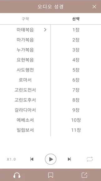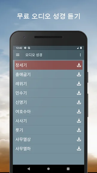 * 오디오 성경은 일부 번역본에서만 지원하며 다운로드가 불가함.