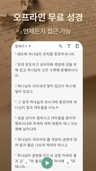 - 백그라운드 플레이어 기능을 사용하면 좋아하는 구절을 듣기 위해 매번 앱을 열 필요가 없습니다.