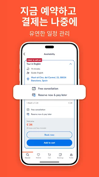 GetYourGuide: 계획하고 예약 어플에 대한 스크린샷 정보가 필요하시다면 아래 이미지를 참고하시기 바랍니다.