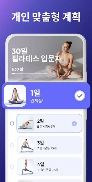 전문가들이 여러분의 30일 플랜을 확인하고 본인의 검토를 거쳐 즉시 수정됩니다. 9개 유형의 플랜을 통해 칼로리 소모, 면역 계통 개선 등의 효과를 보실 수 있습니다. 휴식일과 다양한 운동 등을 통해 신체를 고루 단련하면서 더욱 합리적인 피트니스 여정을 즐기세요.