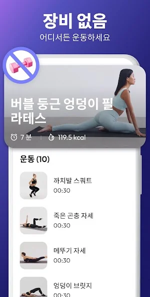 지방 연소 운동 - 체중 감량 홈 트레이닝 어플에 대한 스크린샷 정보가 필요하시다면 아래 이미지를 참고하시기 바랍니다.