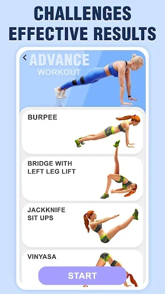 • 3단계 난이도의 여성을 위한 운동 • 집에서 개인 트레이너 역할을 합니다. 언제 어디서나 연습하세요. • 건강을 유지하고 뱃살을 빼는 간단한 운동. • 장비가 필요 없이 집에서 체중을 사용하여 운동하십시오. • 체지방 감량을 위한 체중 감량 목표