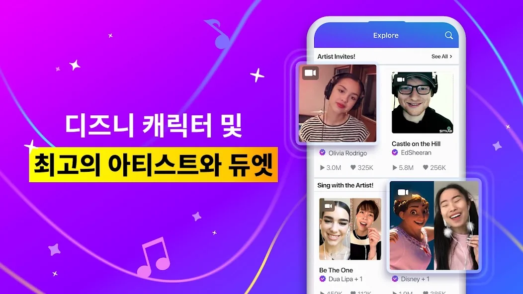 - 글로벌 아티스트와 듀엣: Dua Lipa, Olivia Rodrigo, Ed Sheeran, 그리고 디즈니 캐릭터와 함께 듀엣으로 노래하며 스타처럼 느껴보세요! 당신이 좋아하는 아티스트와 함께 노래를 불러볼 수 있는 특별한 기회를 즐기세요.