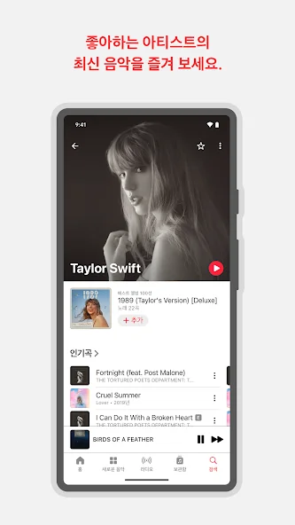 • ‘신곡 레이더’ 및 ‘금요일의 새 음악’ 플레이리스트로 최신 음악 정보 확인