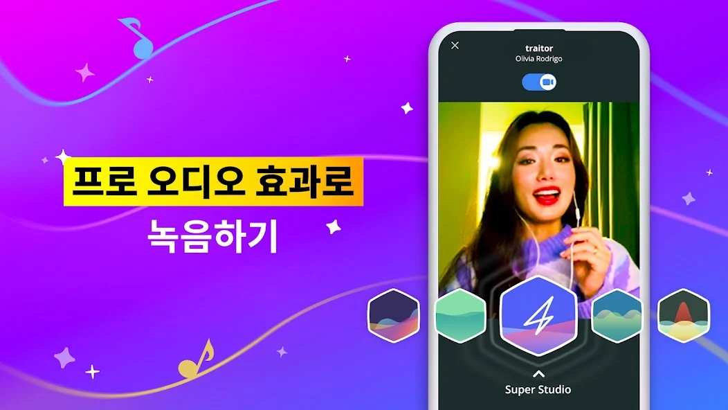 - 보컬 녹음 도구: 스튜디오 품질의 보이스 이펙트로 최고의 목소리를 들려주세요. 리버브, 보컬 튜닝, 음량 조절 등 다양한 기능으로 노래를 업그레이드하세요. 노래방 마이크 없이도 전문가처럼 들릴 수 있습니다!