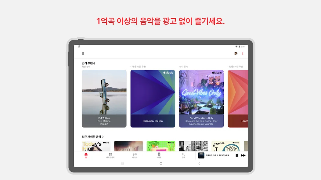 • 1억 개 이상의 노래와 6백만 개의 팟캐스트 청취