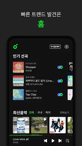 [홈] 요즘 인기있는 트렌디한 음악과 멜론 오리지널 콘텐츠를 만나볼 수 있습니다.