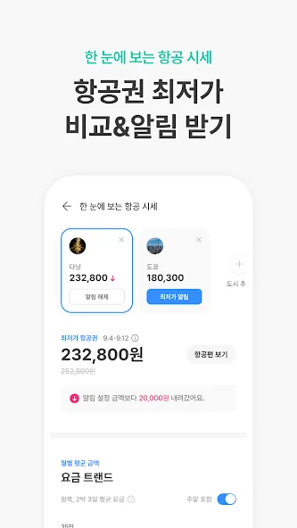 • 10% 이상 요금 인하 시 요금 알림 기능