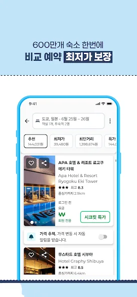 3억 명 이상의 여행객이 전 세계 호텔 상품을 한눈에 비교하는 바로 그 앱!