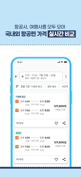 언제, 어디서든 전 세계 저가 항공권과 호텔, 렌터카를 한 앱에서 검색·비교·예약하세요. 대한항공, 아시아나항공, 제주항공, 티웨이항공, 진에어, 에어부산 등 국내선과 국제선 인기 항공사를 모두 지원하며, ICN·GMP·PUS 등 주요 공항 출·도착 운임과 OTA 특가를 한눈에 확인할 수 있습니다. 예약 수수료나 숨겨진 비용 없이 KRW 기준 최저가만 제공합니다.