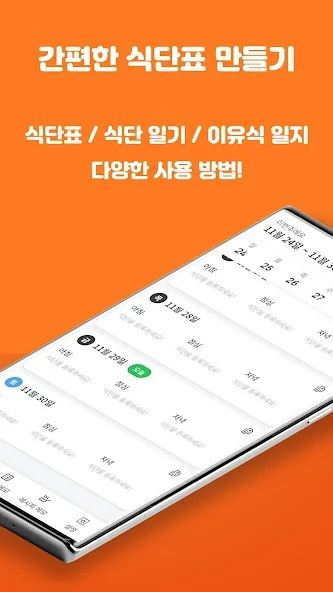 이 앱은 식단표와 일기, 그리고 식단 계획까지 한 곳에서 모두 관리할 수 있게 도와줍니다. 매일 먹는 식사뿐 아니라 간식이나 야식까지 부담없이 기록할 수 있어요. 덕분에 건강한 식단을 꾸준히 유지하는 데 큰 도움이 되죠.