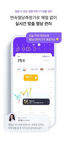 특히 혈당 관리를 위한 슈가케어 기능도 정말 유용해요. 무채혈 연속혈당측정기와 AI 코칭이 결합돼서 혈당 수치를 실시간으로 확인하고, 건강한 혈당 유지에 도움을 줍니다. 전문가와 1:1 상담도 가능하니 걱정이 없어요.