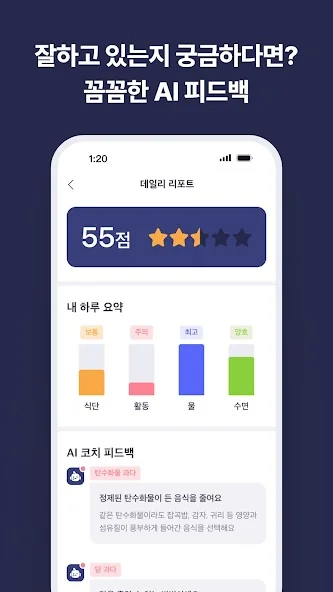 이 앱의 가장 큰 강점은 나만의 맞춤 코치가 있다는 거예요. AI가 내 목표와 현재 상태를 파악해서 적절한 식단과 운동 계획을 추천해주고, 실시간으로 피드백도 받을 수 있답니다.