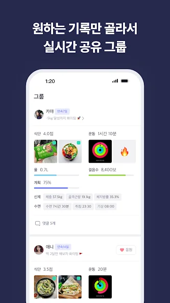 또, 같은 목표를 가진 사람들과 함께 하면서 서로 응원하고 기록을 공유하는 것도 이 앱의 매력이에요. 혼자 하기 어려울 때는 그룹을 만들어서 함께 건강한 습관을 유지하는 것도 추천드려요.