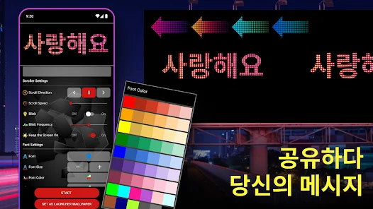 휴대폰을 멋진 전자 게시판으로 바꿀 수 있습니다. 배너 광고, 전자 간판, 자막 표시를 표시 할 수 있습니다.