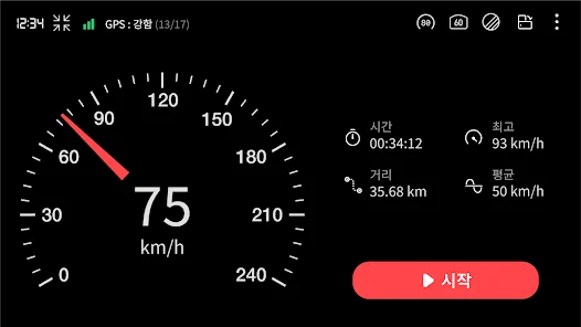 아래는 GPS 속도계 어플에 대한 스크린샷 정보입니다.