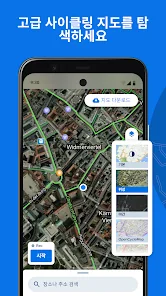 • 지도로 공공 화장실, 자전거 주차장, 급수시설, 수리점, 자전거 대여소, 전기 자전거 충전소 등 필수 관심 지점(POI)을 확인하세요.